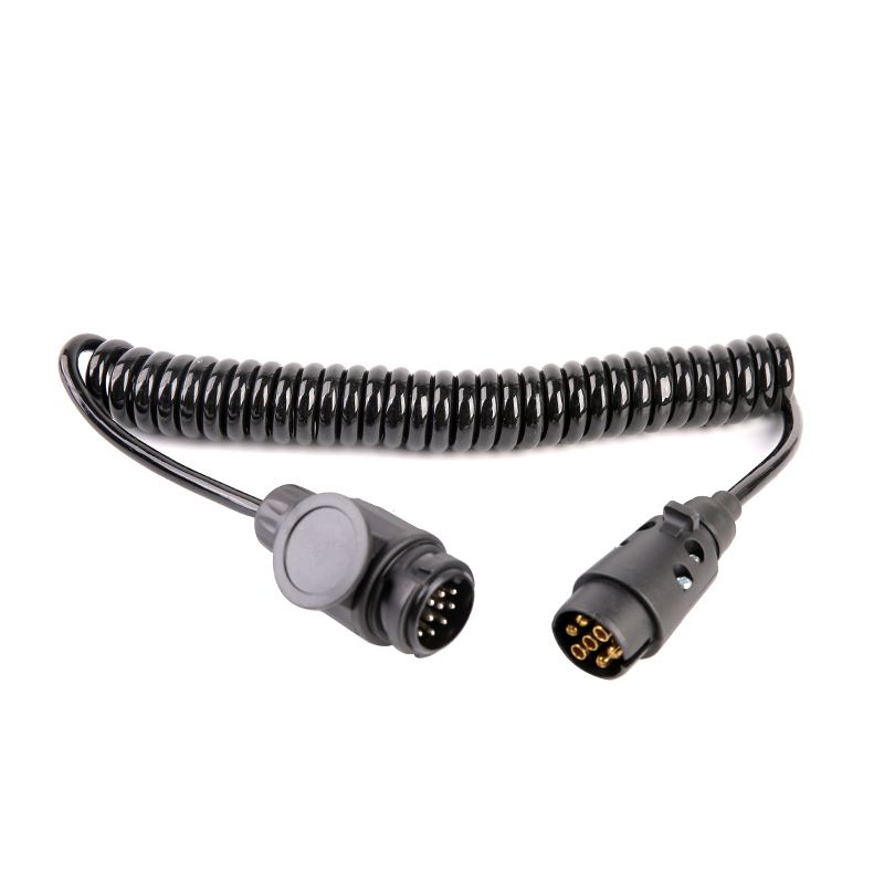 ملف حلزوني PU أسود ذو 7 أقطاب، 2 قابس JH003، JH008، طول الكابل 1 م، 2 م، 3 م ..... JH020-C OEM/ODM